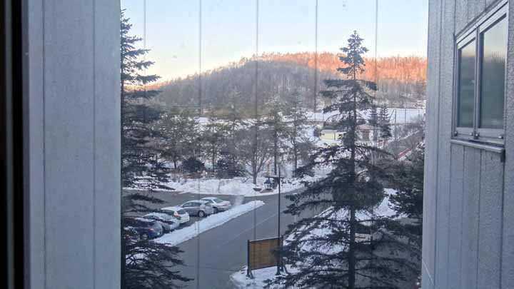 午前2時に風呂に入りに行って暖まった後、寝たが朝はいつもの5時半に目が覚める。カーテンを開けると、ガラスの外側の霜や水滴がびっしりと凍り付いている。6時前後になると明るくなってくる。窓を開けると空気が凍り付くほど寒く、シビレる。天気予報によると、本日の最低気温は氷点下12℃とのこと。