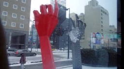 午後3時に駅前の紅い手がバス待ち合わせ場所だが、銀色の手は雪を掴んでた。