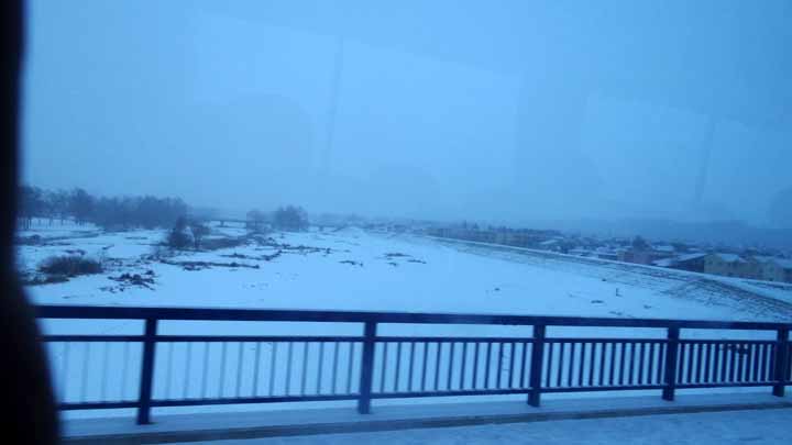 昨日と同様10時出発のバスに乗った乗客は男性のみ僅か8人に過ぎなかった。昨日は40人以上が乗って満員状態だったが、今日は雪模様という気候が我が家同様の対応となったようだ。