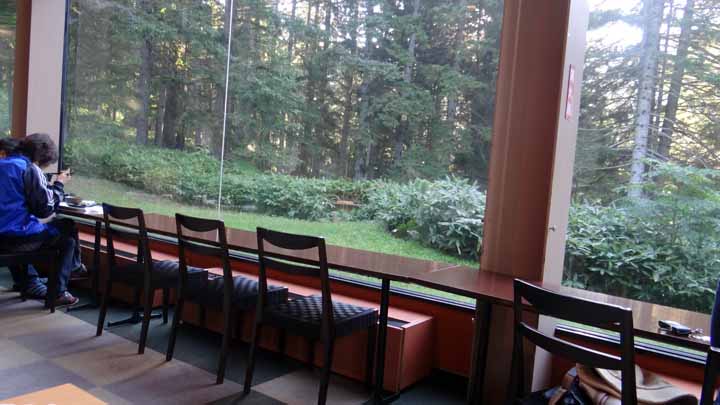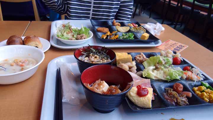 1時間ばかり雲海テラスで眺望を楽しんだ後ゴンドラで降り、6時半過ぎに朝食をビュッフェ森のレストランで食べる。昨日食欲より眠気が勝ってビールだけで寝たので今朝は食欲が湧いた。和食も洋食もデザートもお茶もうまかった。ごはんの銘柄は「ぷっくりんこ」だった。