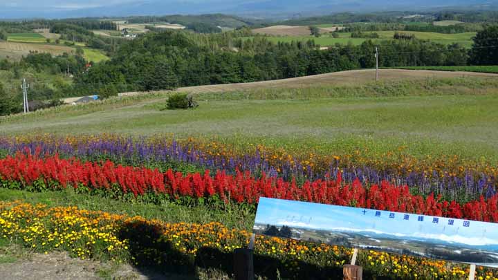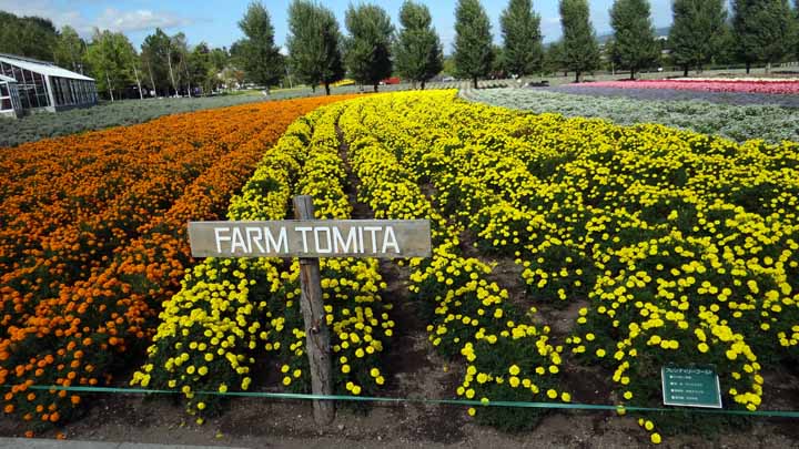 道の駅の次は中富良野にある富田ファームで花を鑑賞し、隣にある富田メロンハウスでカットされたメロンを味わった。富良野の花と言えばラベンダーだがこれは夏の花なのでいまはない。かわりにマリーゴールドやコスモス、サルビアなどがたくさん咲いていて眼を楽しませてくれた。紫のサルビアがラベンダーを思い出させた。お昼になっても、朝ビュッフェで食べた朝食がまだおなかに残っており、結局お昼は二人でメロン2切れ250円を分け合い食べただけで済ませた。