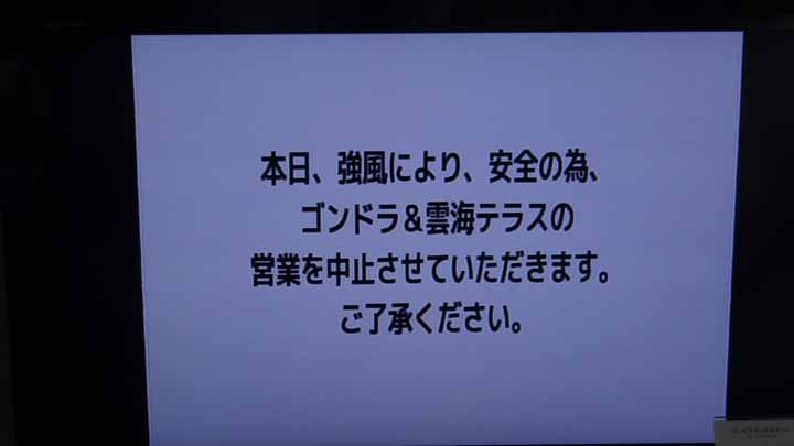 今朝はゆっくりと寝ようと思ったが、通常5時半に起きているのではやくに眼が醒めてしまった。今日の雲海がひとごとながら少々気になったので2チャンネルを点けてみると、「強風のためゴンドラと雲海テラスの営業は中止にします」と表示されていた。天気予報によると、午前中は曇りだが、午後からは雨の予報。これから先が心配だ。