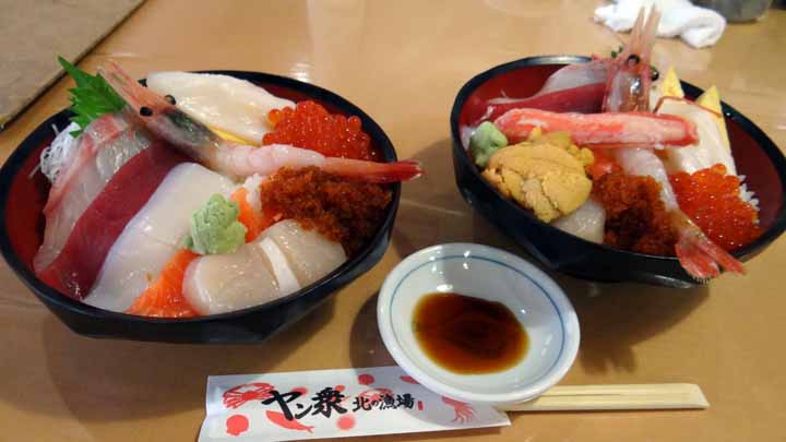 まず場外市場に行って乾き物の名物を購入。ホタテとジャガイモの煎餅「ほじゃが」、カレー味煎餅「カリカリ」を買った。カルビー製菓の「じゃがぽっくる」は大メーカーにも関わらず、一人2個までと制限していた。制限されると買いたくなる衝動を利用した効果応用なのか。