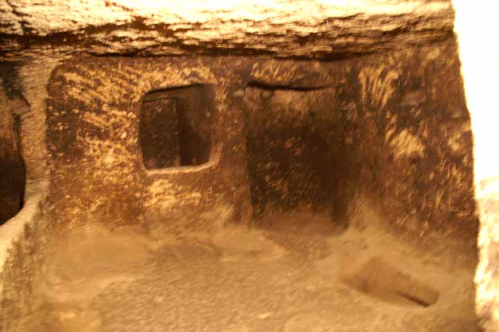バスで少し行ったところにカイマルク地下都市があり、其処にも入ってみた。地下4階まで掘られて、結構広い洞窟都市である。外敵から身を守るために暗くしたり、途中落とし穴などを設営した跡が伺える。明日、またカッパドキアをゆっくり歩く予定があるのだがとても楽しみ。
