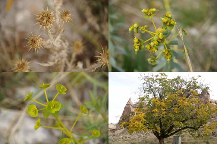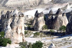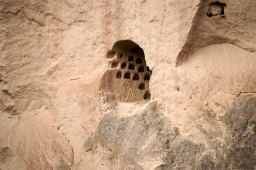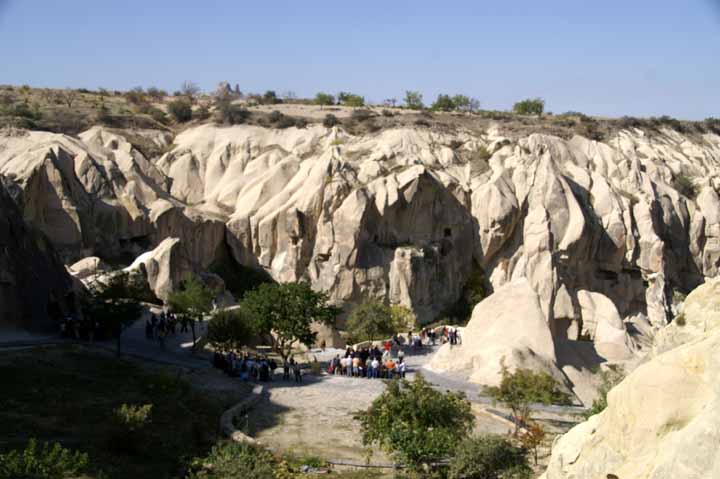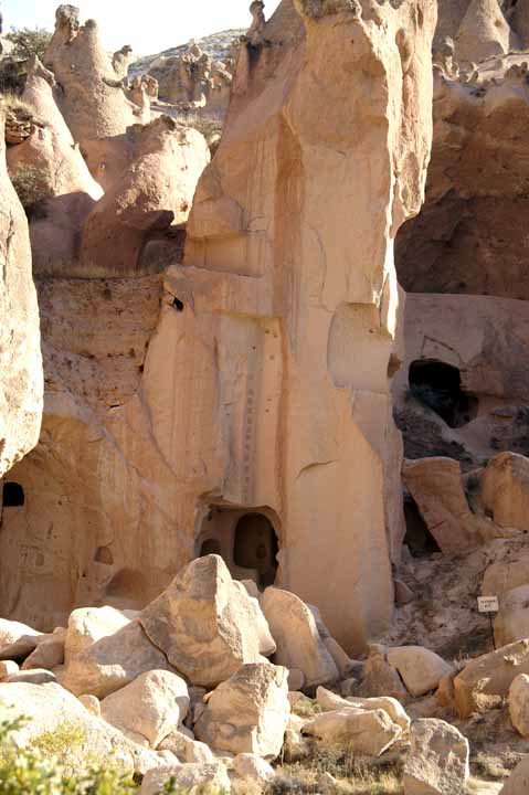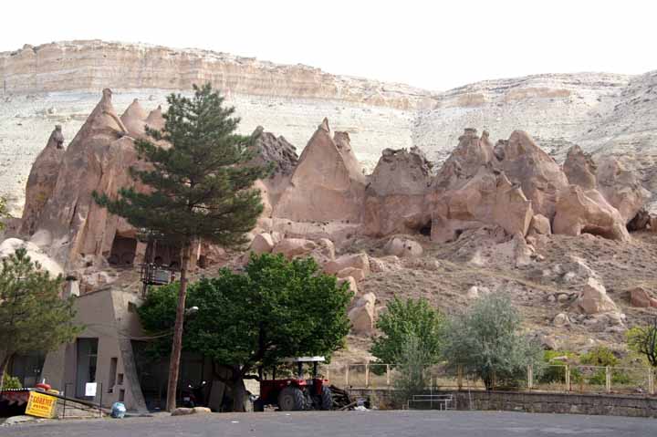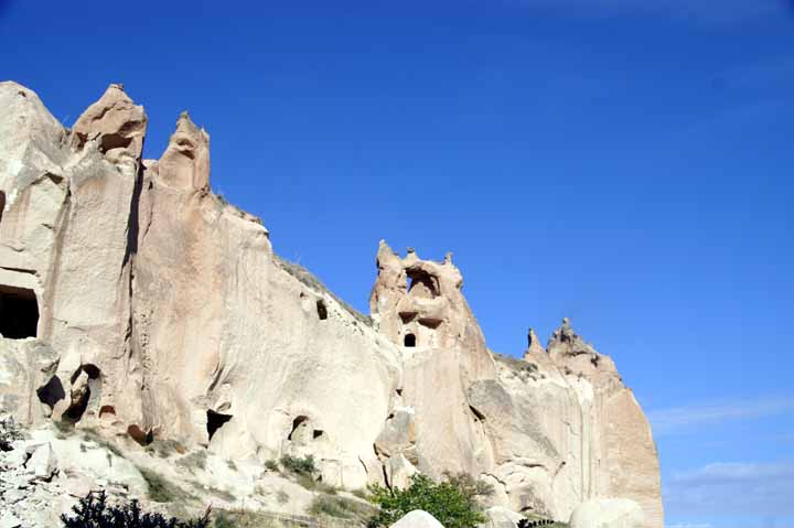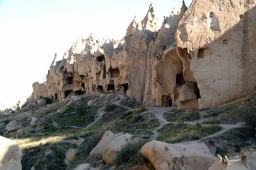 カッパドキアはたいへん広大で2日間で見て廻ることはできない。全体を見るには気球からの旅がある。しかし、今回ツアーには組み込まれていない。まずゼルベ野外博物館に行った。聖堂や住居が無数にあり、山のそこここに点在していた。奇岩の中に作られた住居の外観を見ながら約30分ほどの散策を楽しめた。1000mを超える高原なので珍しい花や草が多いようだ。
