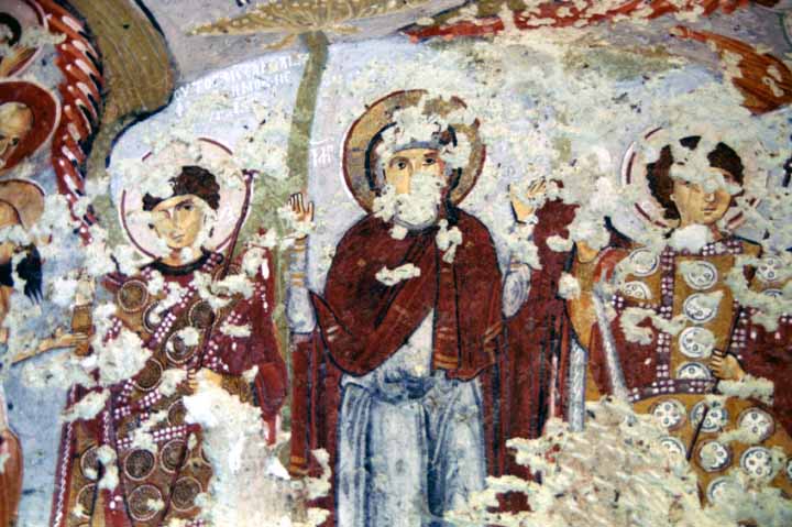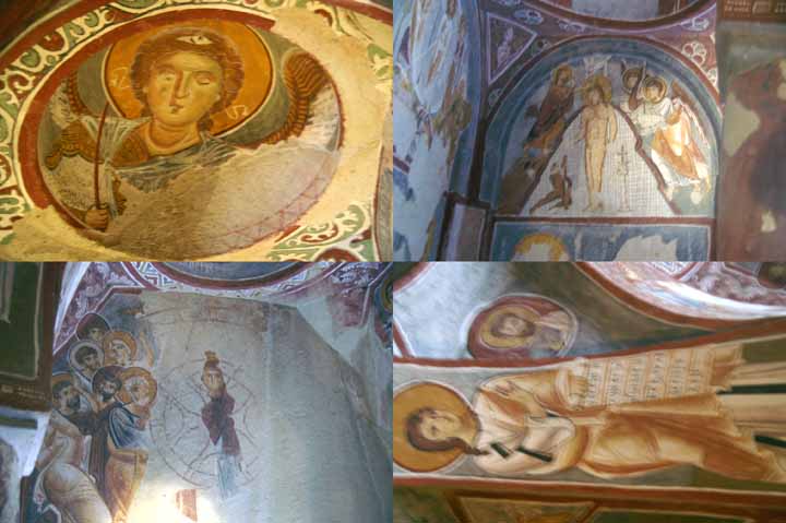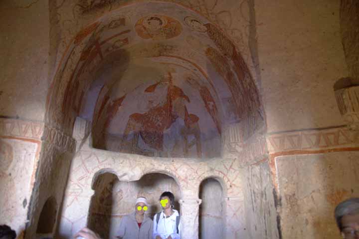 次に行ったのがゼルベ野外博物館。ここには岩の中に教会があり、「暗闇の教会」「蛇の教会」「サンダル教会」などミドコロが多く、特にフレスコ画の保存状態は良かった。昨年イタリアでフレスコ画はいろいろ見てきたが、それに負けないほどだ。