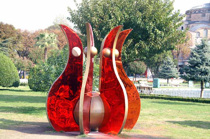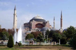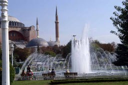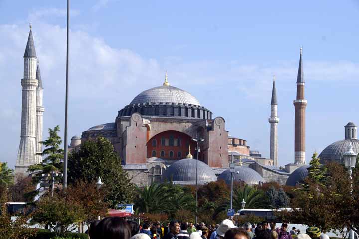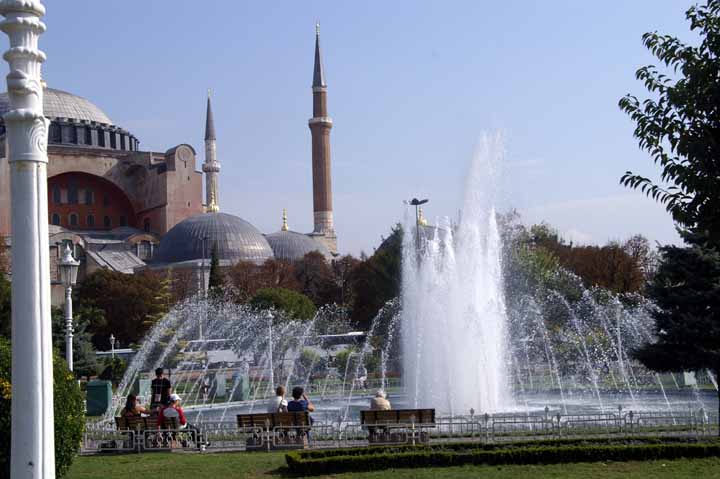 その前には元ギリシャ正教の大本山であった、アヤソフィア博物館がデンとそびえる。飛行機の時間の関係もあり、今回は外観のみ鑑賞する。イスタンブールの文字が刻印されたベンチがとっても寂しそうにしていたので、写真を撮ってあげた。