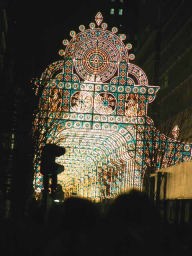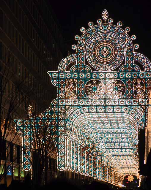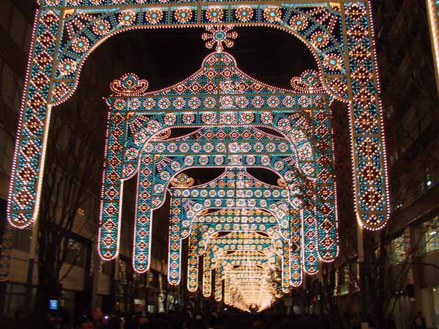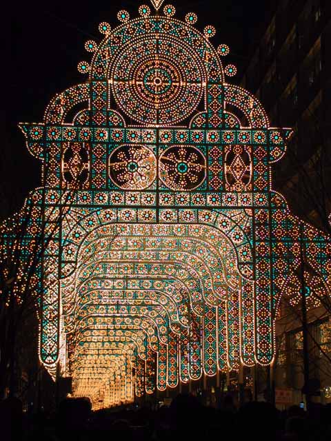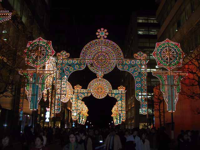 12月24日午後5:45に東京駅丸の内北口に到着。そこから、300m先のミレナリオ入り口までかかった時間が驚くなかれ、45分。初日でクリスマスイブとは謂え、時速400mは歩く速度の10分の1以下。それでもはじめてだったので、まばゆいあのステンドグラス模様は最初は感激的。ただ、200mくらいあの景色ばかりなので、多少は飽きてきます。まだ見たことは無いですが、神戸のルミナリエのほうが見栄えが良いと感じた。みんな同じスタイルなのであまりインパクトはない。