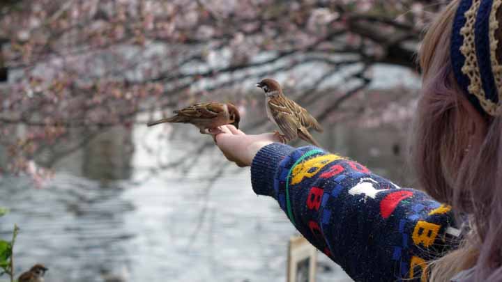 雀が人に馴つく |