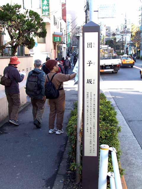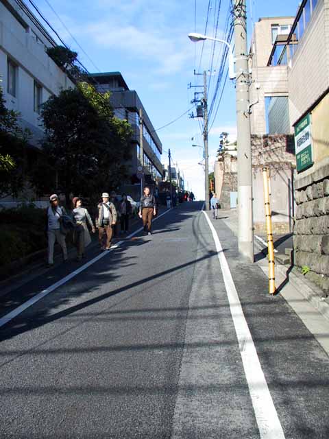 当日は午前6:30に起床してペットボトル・デジカメバッテリ・通勤定期・携帯など怠りなく確認した。出発の午前9:00には若干遅れたがスタートポイントの水道橋駅北口は散歩マンがローカルウォークの比でなく、北に向って続々延々・・・。東京ドームの脇を通って、まずは春日局銅像を見学(#1〜3)。道沿いに行くとすぐ都民戦没者霊園があり(#4〜5)陽だまりの奥には東京ドウムの屋根が白く見えていた。牛坂の北野(別名牛)天神(#6〜7)を越えればすぐ飯田橋。ここから市ヶ谷までも山沿いを歩いたが、神楽坂(#8)牛込と文教関係の大小さまざまな出版系企業(印刷・教科書などなど)が軒を連ねていた。神楽坂の頂上付近には毘沙門天善国寺(#9〜11)。生け簀ふぐ、宮城道雄記念館を横目に見ながら、市ヶ谷に着く。JR御茶ノ水〜新宿間は鉄道沿いは比較的ゆるやかだが、少し北側に行くとAA坂、BB坂、CC坂とやたらに傾斜がきつく、距離は短かったがウォーキング者には相当コタエル。浄瑠璃坂を降りるとすぐ市ヶ谷に着くのだが、また急な左内坂を登りつめるとイラク派遣で有名な牛場長官がいる防衛庁がある(#16)。都心のウォークイベントはこれが初めてだが、距離のワリにはあまり見るべきものがなく少々退屈な感じがした。ローカルウォークだと遠くの山並みや川のせせらぎで癒されるのだが、都心を歩いていると土曜日でもビル建設や車・人などですべてがセカセカして慌しい。