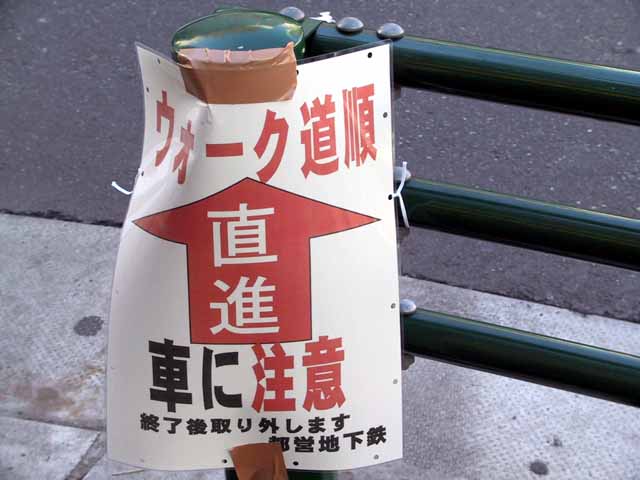 都営主催のウォークは順路案内がカーブごとにくどいほど貼ってあり、千葉ウォーカーにとってはありがたい。オマケに車・自転車に注意など細かな注意書きがありたいへん親切だった(#36)。