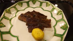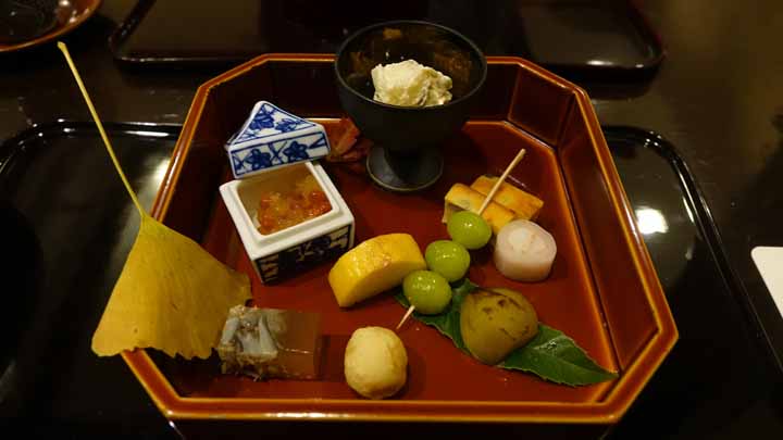 お昼ご飯は宿で用意して貰ったステーキ丼を食べに帰って、午後はやはり近くの彫刻の森美術館まで歩き、野外美術をゆっくりと観て廻った。夕方になって長袖シャツでも肌寒くなってきたので宿に戻る。とんかつの名店「たむらの銀カツ亭」はあいにく水曜日が定休。今夜は「強羅花壇」の料理屋「花壇」に行き懐石料理を食べることにした。旅館や料理屋に花壇と名の付く店は香川の「琴平花壇」、兵庫県明石市の「人丸花壇」しか行ったことが無いが、いずれも美味しい料理とそれにマッチする高価格なお店の印象がある。ここ、強羅の「花壇」も、6時半頃に食事に行きたい、と電話予約を入れると6時25分に高級車メルセデスベンツが我がリゾート宿まで迎えに来てくれた。流石である。