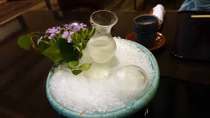 雰囲気も良く料理はもちろん、氷でキンキンに冷やしたお酒も美味しかった。日本酒「箱根山」はやはり燗酒より冷が旨い、と思う。1時間半の夕食は時の流れを十分感じられた。この旅館は1泊2日2名の料金でも最低でも10万円を超える高級旅館らしい。帰りも宿まで豪華な内装の最高級車で送って貰えた。