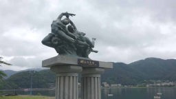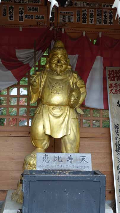 その後は河口湖大橋の南岸大池公園まで戻ってきた。此処には、黄金の七福神の7番目恵比寿天が鎮座しており、さらに歩くと「湖上の女神像」もあった。しかし湖上とは名ばかりで岸辺に像は建ててあった。