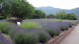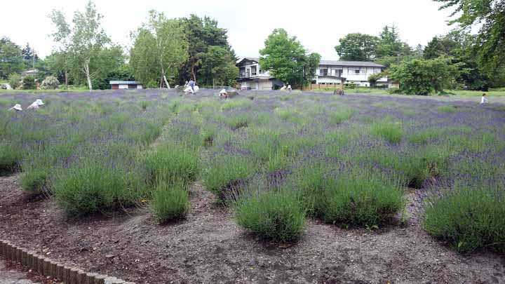 大石公園ではまだラベンダーは咲き始めで紫色は薄かったがそれでもたくさんの花々が花街道の両側を彩って美しかった。富士山の集いモニュメントと言うのもあった。富士と名のつく全国の山の石や岩を500か所以上集めて山型にした記念碑で、面白いものと感じた。