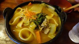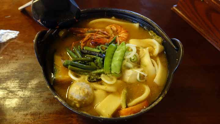 お昼を過ぎたので、昼食はほうとうにしようと別荘近くの「ほうとう小作」でちゃんこほうとうと合鴨ほうとうをふたりで食べてきた。前にも思ったが放蕩は鉄鍋にほうとう以外に、味噌出汁と具材がてんこもりでかつ熱いので一人前食べきる頃には、お腹がいっぱいになっている。