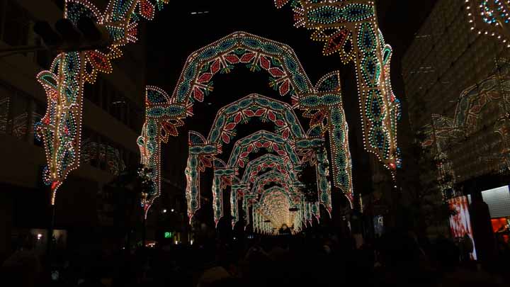 素晴らしかった。数年前丸の内で開催されているミネナリオを見たときよりも明るさ・スケールで先発の強みからか素晴らしく、圧倒された。 大勢の観客と警備の人で会場の旧居留地、東遊園地付近は熱気で溢れかえっている。100円募金をして、携帯ストラップも記念に買いました。