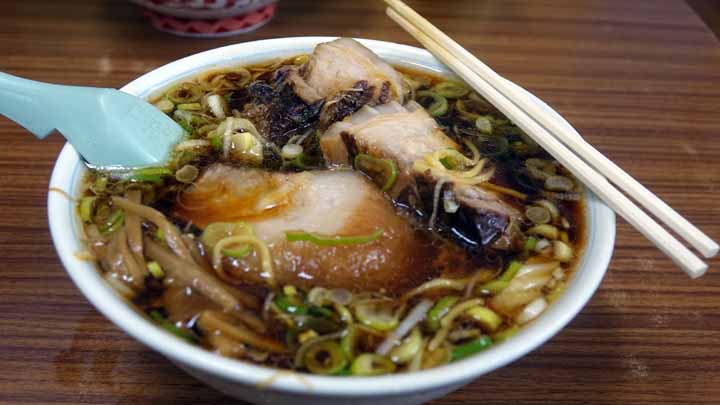 竹岡式ラーメンとは、千葉県内房周辺で作られているご当地ラーメンである。竹岡ラーメンの特徴は独特の作り方にある。スープは、醤油ダレに麺茹でに使用した湯(または何も入れず沸かした湯)を入れるのみである。その醤油ダレにはしっかりと肉のうま味が溶け込んでおり、湯を加えることで見た目は濃いがまろやかな味のスープとなる。薬味には玉葱の角切りを使う。発祥は千葉県富津市竹岡(漁師町)にあるラーメン店「梅乃家」(うめのや)と「鈴屋」(すずや)。