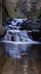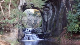 千葉県君津市笹にある清水渓流公園内の亀山の洞窟に流れる滝。清水渓流広場(濃溝の滝・亀岩の洞窟)は、洞窟に差し込む朝日がスポットライトのように岩肌と川面を照らし、ハートの形を作り出す幻想的なスポットとして、インターネットを中心に多数のメディアで注目されている。