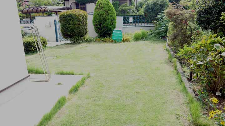 我が家の庭は大半が芝だけ