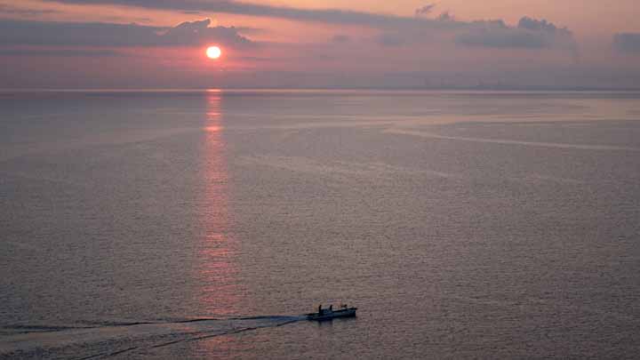 別府湾に出る朝陽