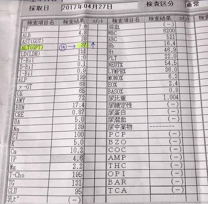 血液検査などの結果