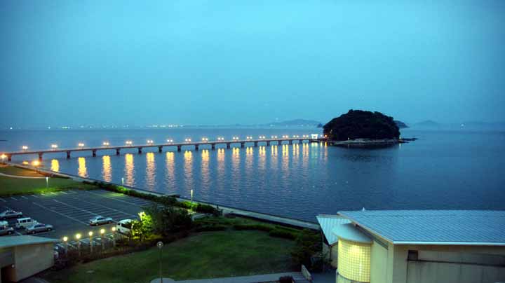 夕方、蒲郡の竹島をホテルからみる