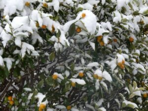 昨日の大雪で近所のキンカンにも雪の洗礼が。。。