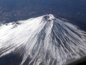 午前中の羽田は出発渋滞が多く、この飛行機の離陸は11時1分。21分遅れとなるが多分定刻12時5分頃には着くだろう。羽田岡山とも薄曇りとのことで離陸時から機外の撮影は薄ぼんやりして撮れ高悪かった。然し、15分後には、機体がほぼ富士山の真上を通れてラッキーだった。