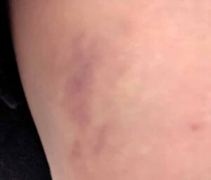 打撲の跡がくっきりと