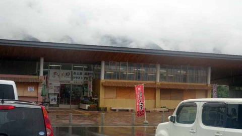 雨なので、次の目的地も道の駅「上田道と川の駅」。ここでも欲しい松茸や林檎、地元野菜、信州味噌など色々と買う気をそそる品々が有った。
