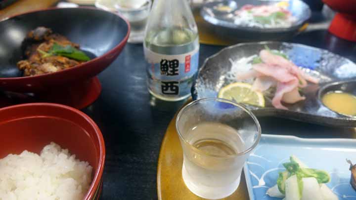 12時に道の駅を出て、昼食は鯉のアライ。お店は「鯉西」。鯉のアライをはじめ、鯉こく、唐揚げ、稚鮎天麩羅などなど川魚料理と地酒オリジナル冷の「鯉西」が雨で鬱陶しかった心地を一新させた。旨かった。ほかの仲間は今夜お寺到着後帰りの運転がありあまりお酒を飲まれなかったが最後にdachs飼主だけが気持ちよく酔えた。