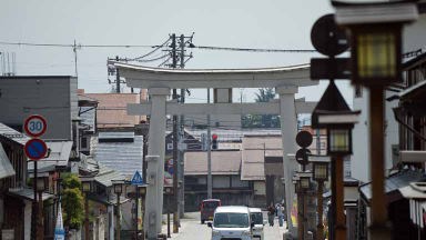 バスは80分かけて、東北中央道経由で、山形県南陽市にある熊野大社にむかう。10時40分には栗平トンネルを越えて山形県米沢市に入った。11時40分に大社到着。