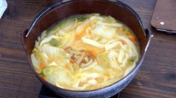 ホテルに入る前に「みちの駅かつやま」で甲府もつ煮、ごぼうスープなどこのあたりの名産品を入手してきた。