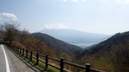 腹ごしらえをして愈々これから河口湖周辺の探訪が始まる。まずは御坂峠まで5kmほどの山道をたんたんと登る。2時前に峠に到着して、高台からの富士山を眺める。太宰治が有名な句(詩?)「富士には月見草がよく似合う」と詠んだ地である。彼はこの峠にある「天下茶屋」に泊まり込んで筆を運んだという。