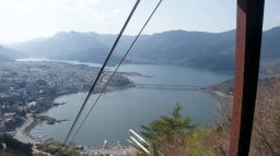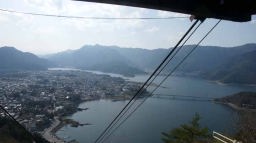 河口湖の全景を上からしっかり見たいと思い、14:30、天井山カチカチ山ロープウェイに行く。3分ほどの短い搭乗だったが、方向は違うが、富士山と河口湖を一望できた。