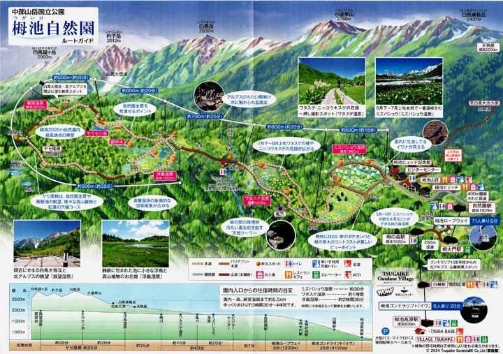 8時30分の栂池高原向けのバスに乗って9時に栂池公園からのゴンドラに乗り込む。ゴンドラなので時刻表はもちろん無くて20分ほどかけて登った。朝から晴天でアルプス全体にも雲はほとんどかかってないまさに日本晴だ。我々がターゲットにしているのは白馬山系であり、長野県北部にかかる北アルプスの山である。ゴンドラを降りて少々歩いて今度はろーぷに乗るのだが、こちらは時刻表があって、10時発には数分遅れて暫し待った。10時20分発に乗って10分弱乗り、栂池自然園に着いたのは11時前。