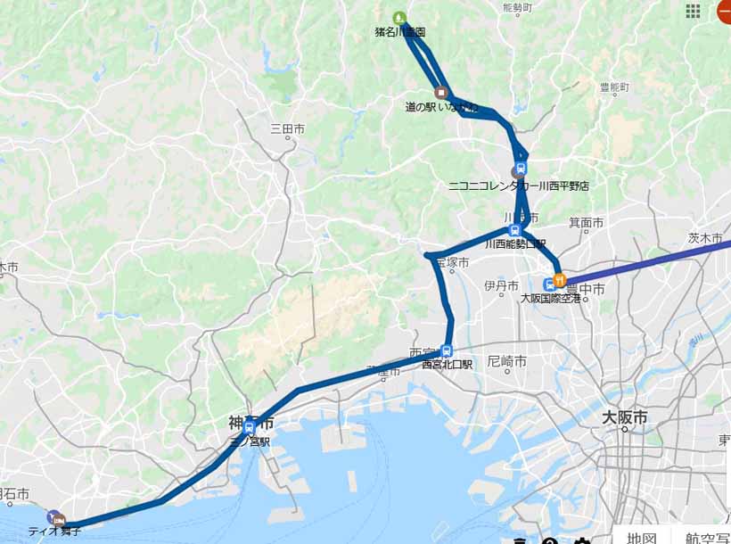 ![]() | 平野で レンタカー | 15:00 | 兵庫県 川西市 | 霊園から戻る(ニコニコレンタカー) |