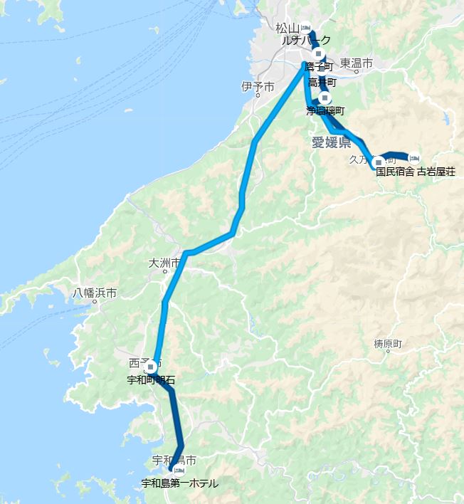 ![]() | 宇和島 第一ホテル | 17:00 | 愛媛県 宇和島市 | 午後5時30分頃、ホテルに到着予定![]() |