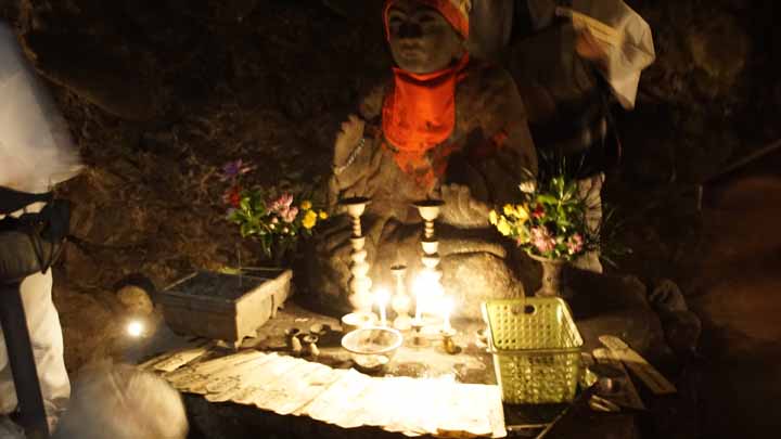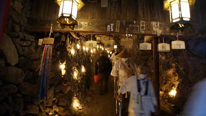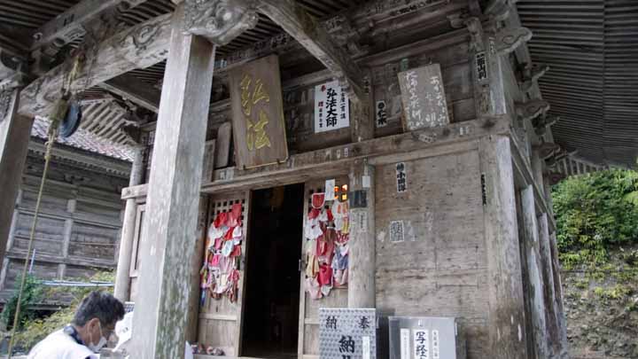 繁多寺を8時に出発。次は49番浄土寺、8時5分に到着。往来から奥まった場所に建つ浄土寺は遊行僧空也上人とゆかりが深い霊場だ。8時半にバスは出発し、48番西林寺に8時40分に着いた。ここは門前に川があり、川より低い地に建っている。このため、罪深い人が境内に入ると無間地獄に落ちるとされ、「伊予の関所寺」とも呼ばれている。9時に出発して47番八坂寺に着いたのは9時10分。ここも奥まった場所にあり、駐車場から境内までは遠い。駐車場から200m超を徒歩で往復した。次の46番浄瑠璃寺は徒歩でも1kmで歩けたが、200m歩いて駐車場に戻り9時45分に出発。高さ20mを越える大樹はビヤクシンと書いてあった。浄瑠璃寺の参詣を終え、バスは10時15分に出発。次は本日一番の険しい道や石段が難歩行がある45番岩屋寺に11時に着いた。穴禅定と言われ、このお寺さんのお地蔵さんの岩穴では我が家の霊位を奉ずる御経木を供えさせてもらった。片道20分の荒行だった。良い修行になったかも。バスに戻ったらスマートウォッチの万歩計は9510歩を指していた。