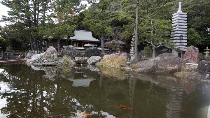 朝は気持ち良い爽風が気持ちよかった。が、とにかく今は温かいというより暑い。高知に入って国道56号線の温度計は24℃と表示されており、沖縄那覇並みだ。39番延光寺には11時着。本堂と大師堂が近いときはお参りを両方済ませてから、勤行を2回向きを変えて行うので普通40分かかるのが30分弱で終了できる。山門をくぐると左側に大赤亀の石像が眼を引く。お遍路さんは「鶴」「亀」「龍」などのスタンプを白衣に圧してもらうことでご利益を得ようとこのお寺も亀さんで人気のお寺さんだった。眼にご利益がある「目洗い井戸」もあった、