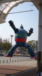 兵庫県神戸市・長田区にある若松公園にある高さ15.6mの「鉄人28号」モニュメント像。足を伸ばして直立させたときの全長が18mになるように2009年に製作された。中は鉄骨、外は耐候性鋼板製。重量はおよそ50トン。両足の下、深さ6mに埋められたおよそ150tの基礎で支えられている。
