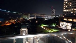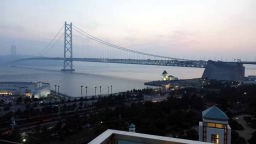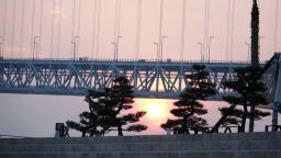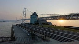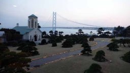 ホテルの前庭にはさくらがほぼ満開になっていた。ホテルはとても快適で、7時半から食べた懐石料理も美味しかった。窓からは明石海峡大橋が昼よりも格段綺麗にみえた。