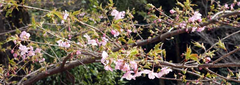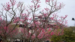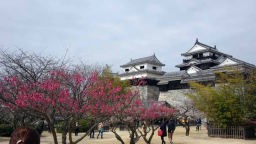 ホテルに戻ってわが手荷物を持って、市電で勝山町交差点近くの今夜宿泊の「東横イン松山一番町」に正午過ぎに入り、荷物を預け、松山城に向かった。松山城へはロープウェイで行ったのだが僅か2分の乗車で一度来た人は歩く人が多いという。午後になって曇りがちとなり、残念ながら、松山城に上がっても遠くは望めなかった。加藤ヨシアキ公で有名な松山城は工事中の城郭や門も多かったが、それなりに勇壮で立派だった。早生の河津さくらがきれいに咲いていた。