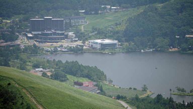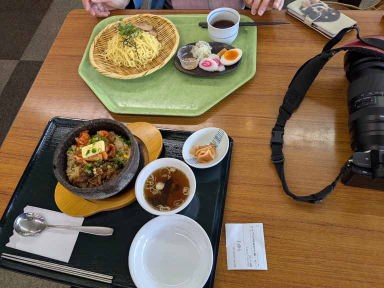 午後1時前に山麓に降りて、チャーハンビビンバとざるラーメンで昼食。2時過ぎのバスに乗ってホテルに到着。ホテルからも車山山頂の銀色に輝く気象庁測候所が見えた。