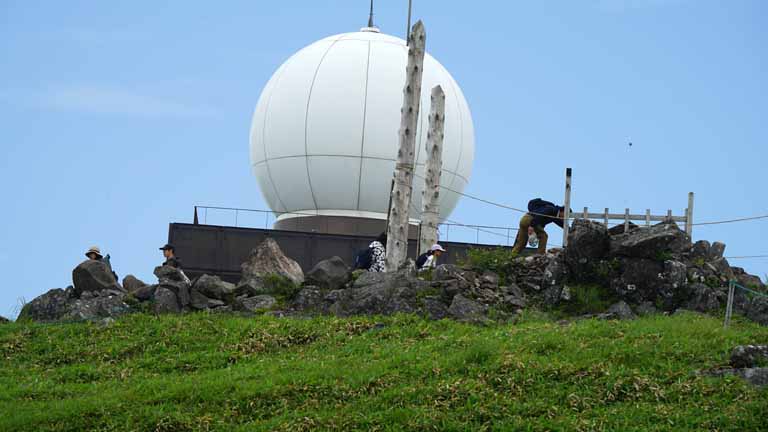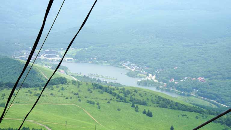 上には車山神社、気象庁の測候所の他、スカイテラスでは八ヶ岳連峰、富士山や近くの緑濃い山々、草原を山の涼風のもと、間近に見られた。ぐるっと巡ると、浅間山を含むアルプスの山容などが360度臨めた、生憎、雲が多めで富士は山頂が遠くに見えただけだが車山頂は感動した。昨日散策した白樺湖の全景も見えた。