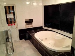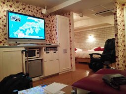 入ってみると流石に、と思った。部屋の大きさは普段泊まるシングルの4倍以上はあると思う。バスもジャグジー付。岩盤浴もできるサウナも室内に装備され、カラオケセットもあり、サウナとバスルームにも各1台づつテレビ装備に驚いたが、50吋と42吋の巨大ディスプレーが、リビングと寝室に2台もあり、テレビビデオとも24時間見放題。久しぶりに高級リゾートホテルで憩っている大臣気分。これなら、このコストでもリーズナブルかもしれない。