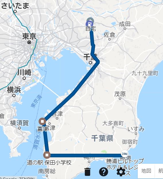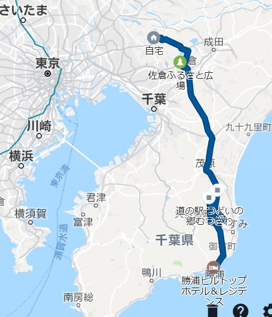 - 2日目 勝浦宿〜清水観音〜道の駅むつざわ〜成就院〜佐倉ふるさと広場〜自宅