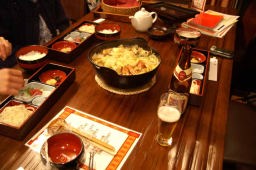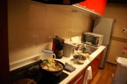 朝夕とも部屋に料理を持ってきて呉れるのでゆっくり食べられる。今夜は寄せ鍋だ。ペット2匹つれてのホテル宿泊は我が家にとって初体験。ラミウリが大小で廊下やベッドソファーに粗相をしないかと心配だ。100平米もあるこんなに広い部屋で1泊2食付1500円は格安。今回は体験宿泊の為、最初30分弱ビデオを見て、その後1時間近く従業員からリゾート会員券の説明と勧誘をされた。詳細は省くが、なかなか快適なシステムのように思われた。明日出発の時に検討結果を伺いにきますと言われた。