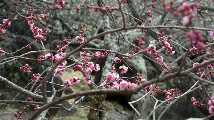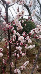 定刻8時20分にベイシア駐車場を出発し、龍ケ崎線を通って圏央道牛久阿見ICに入線し、筑波JCTにて常磐自動車道に入った。谷田部東PAでトイレ休憩後、筑波山に入った。10時に筑波梅園に到着し先ずは梅園を鑑賞。日和はもう一つだが、梅見シーズンなので人出は高齢者を中心にそこそこあった。白梅は7分咲紅梅は満開とのことだったが、まさに満開の梅を堪能できた。急坂を上下しながら四阿(あずまや)まで往復で半時間程散策した。高齢者には杖があるほうが良いのだが、息切れして途中で一服する人も多かった。10時半に筑波山神社に向かい、約10分。参拝は10時45分から11時15分。今日の筑波山・偕楽園ともに過去行った経験があるが梅のシーズンは初めて。梅は桜と違い長く楽しめ、花も綺麗だが枝の具合も観るのには目が和む。1昨年暮れに参拝しているが筑波山神社には新鮮な気持でお賽銭を奉納し、今年の安寧を祈願した。